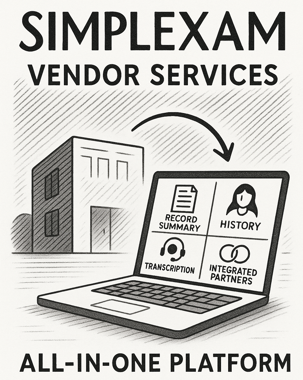 Simplexam helps Qualified Medical Evaluators streamline medical-legal claim management with cutting-edge AI tools and a curated network of trusted vendor partners. From record summaries to transcription and collections, Simplexam offers compliant, efficient solutions designed specifically for the unique demands of QME practices — all while aligning with California Labor Code §4628.